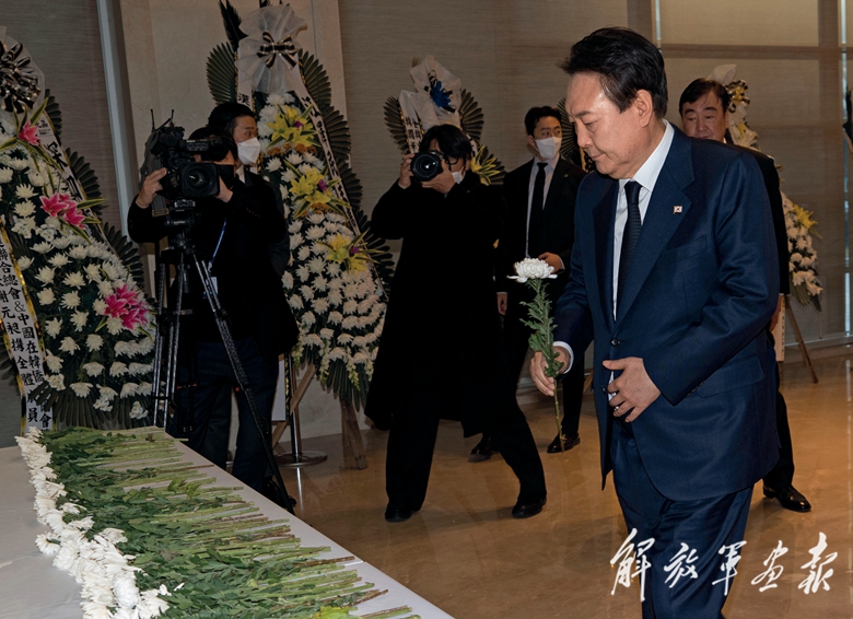 12月2日,韓國(guó)總統(tǒng)尹錫悅在中國(guó)駐韓國(guó)大使館吊唁江澤民同志。(攝影/李相浩)