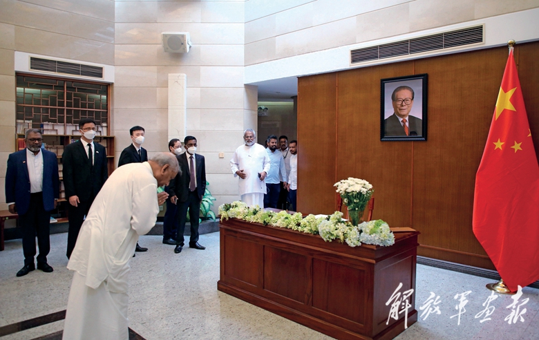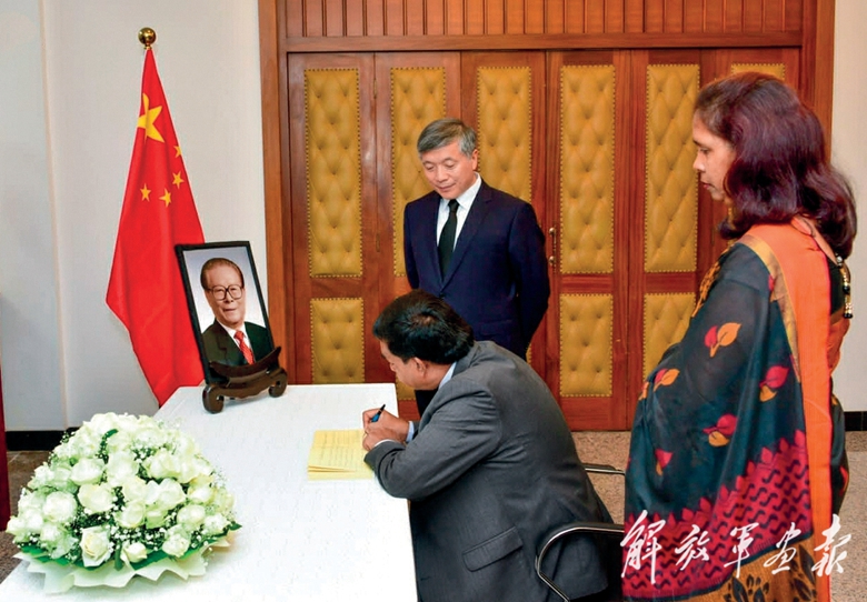 12月2日,斯里蘭卡總統(tǒng)維克拉馬辛哈在中國(guó)駐斯里蘭卡大使館吊唁江澤民同志。(攝影/薩米拉)