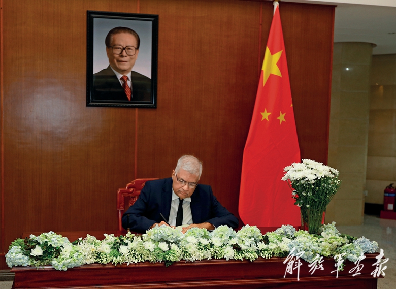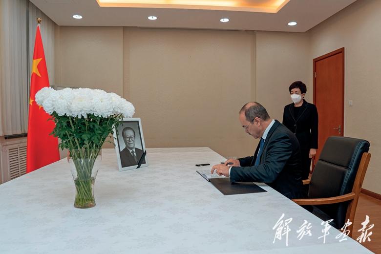 12月5日,烏茲別克斯坦總理阿里波夫在中國(guó)駐烏茲別克斯坦大使館吊唁江澤民同志。(攝影/高 山)