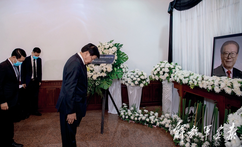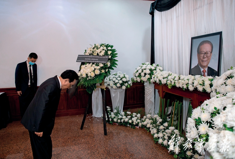 12月5日,老撾總理潘坎在中國(guó)駐老撾大使館吊唁江澤民同志。(攝影/凱 喬)