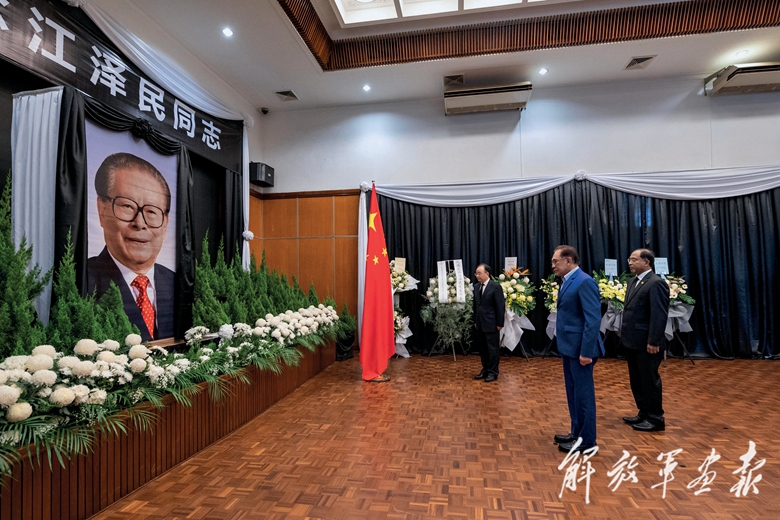 12月6日,馬來西亞總理安瓦爾(右二)在中國(guó)駐馬來西亞大使館吊唁江澤民同志。(攝影/張紋綜)