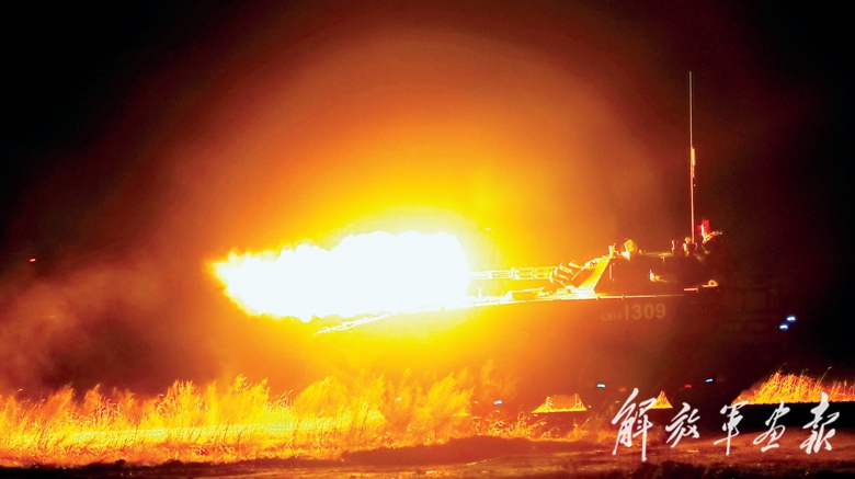 夜間,裝甲步戰(zhàn)車對(duì)“敵”目標(biāo)實(shí)施打擊。