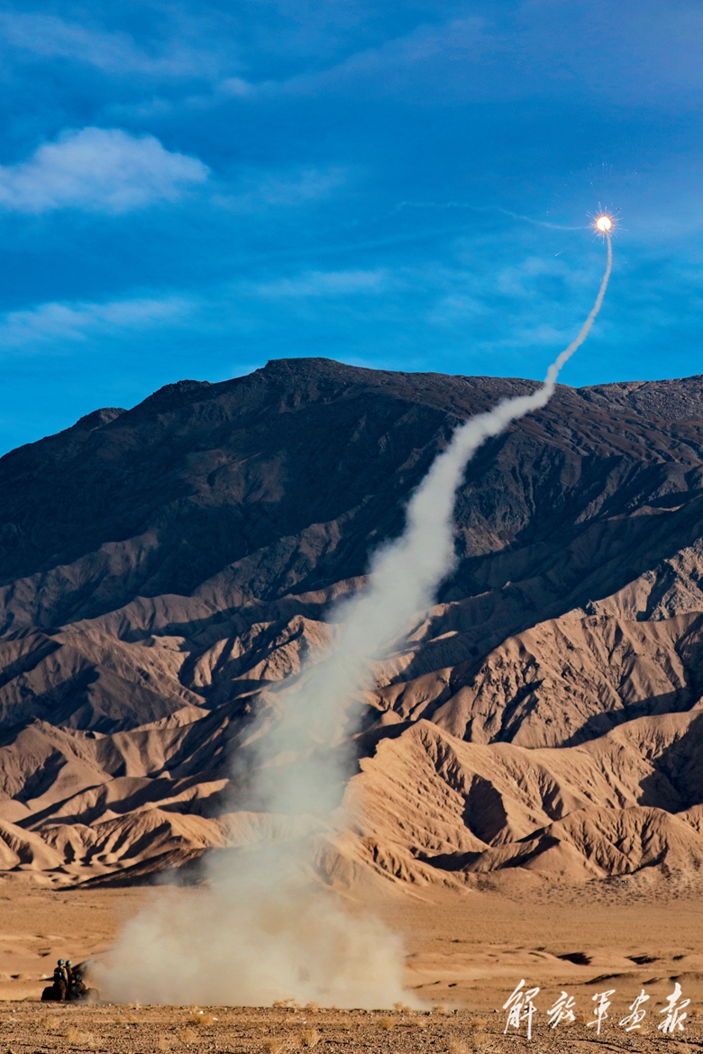 “5 發(fā)齊射,預(yù)備——放!”一發(fā)發(fā)炮彈呼嘯而出,直撲目標(biāo)。首輪火力打擊后,陣地暴露,榴彈炮分隊迅速撤收火炮,向預(yù)備陣地轉(zhuǎn)移。同時,考核組命令另一陣地的火箭炮分隊對“敵”陣地實施火力覆蓋,掩護(hù)榴彈炮分隊轉(zhuǎn)移。