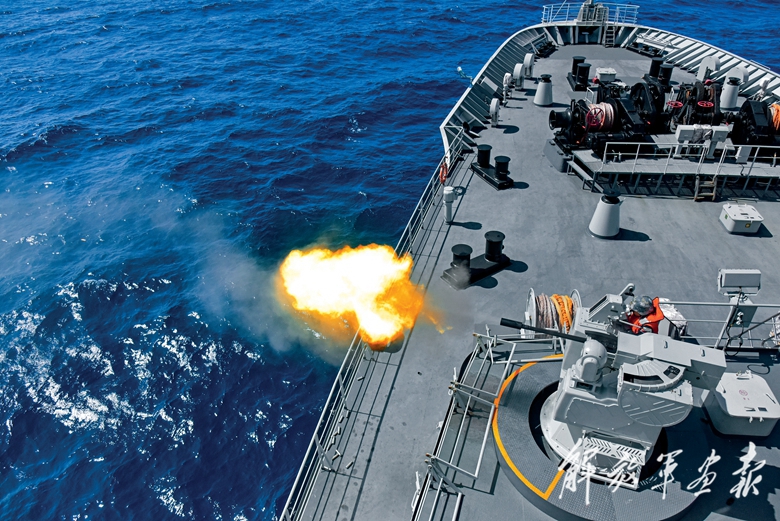洪湖艦對(duì)“敵”實(shí)施打擊。