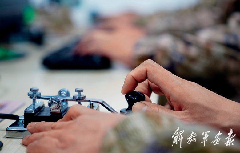 官兵在雷達(dá)站訓(xùn)練室進(jìn)行發(fā)報(bào)訓(xùn)練。