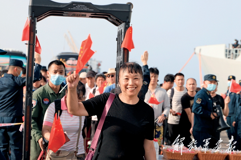 任務(wù)官兵引導(dǎo)撤離人員有序登艦。(攝影/李怡諾)
