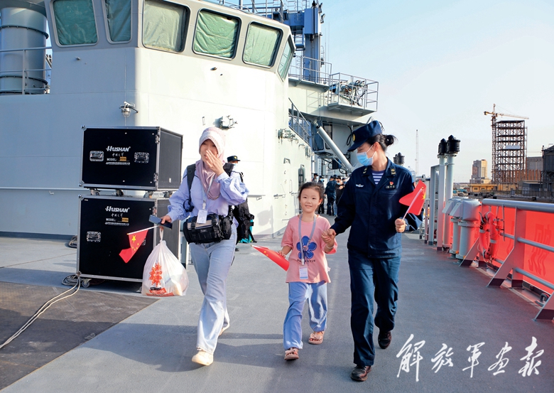 按照撤離行動方案,有千余名中國同胞和外籍人員搭乘中國海軍軍艦從蘇丹的蘇丹港,撤離至沙特阿拉伯的吉達(dá)港,兩個港口橫跨紅海,直線距離約170余海里。為了讓脫離險境的撤離人員在艦上能睡上安穩(wěn)覺,海軍官兵騰出大部分住艙,拿出自己的被褥,還在通道里貼好指引標(biāo)識,告訴大家衛(wèi)生間、餐廳的位置。炊事班幾乎全天不休,保障撤離人員吃上熱菜熱飯。