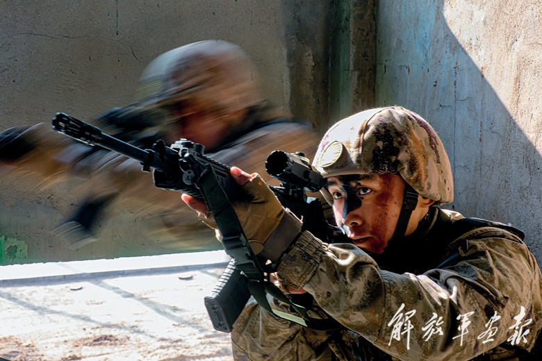 “一名人質(zhì)遭歹徒挾持……”訓(xùn)練中,官兵模擬實戰(zhàn)場景進行教學(xué)。幾名偵察兵分別以樓頂索降、攀爬巖壁等方式進入“歹徒”藏身房間,展開營救行動。他們密切配合,靈活運用戰(zhàn)術(shù)戰(zhàn)法,以迅雷不及掩耳之勢對“歹徒”發(fā)起突擊,成功完成“人質(zhì)”解救任務(wù)。