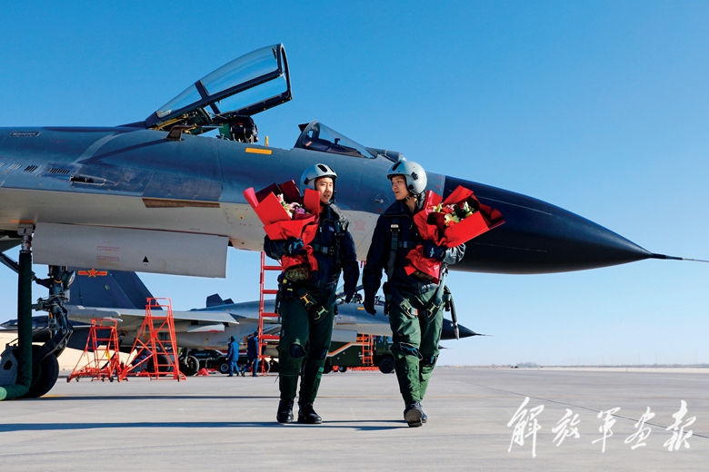 夕陽西下 ,隨著最后一架戰(zhàn)機平穩(wěn)著陸,當日參訓學員全部圓滿完成訓練任務。返航歸來,參訓政治干部為他們送上鮮花,保障人員紛紛鼓掌祝賀。