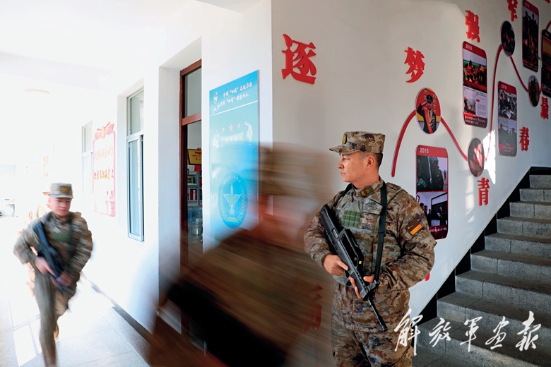 侯長(zhǎng)嶺帶領(lǐng)戰(zhàn)友開(kāi)展應(yīng)急訓(xùn)練。