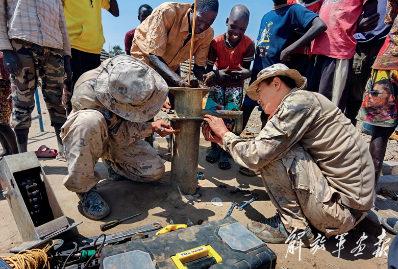 我維和工兵分隊官兵為南蘇丹(瓦烏)民眾修理水井。