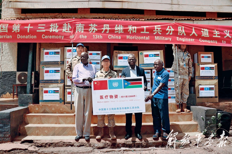 我維和工兵分隊官兵向南蘇丹(瓦烏)醫(yī)學院捐贈醫(yī)療物資。