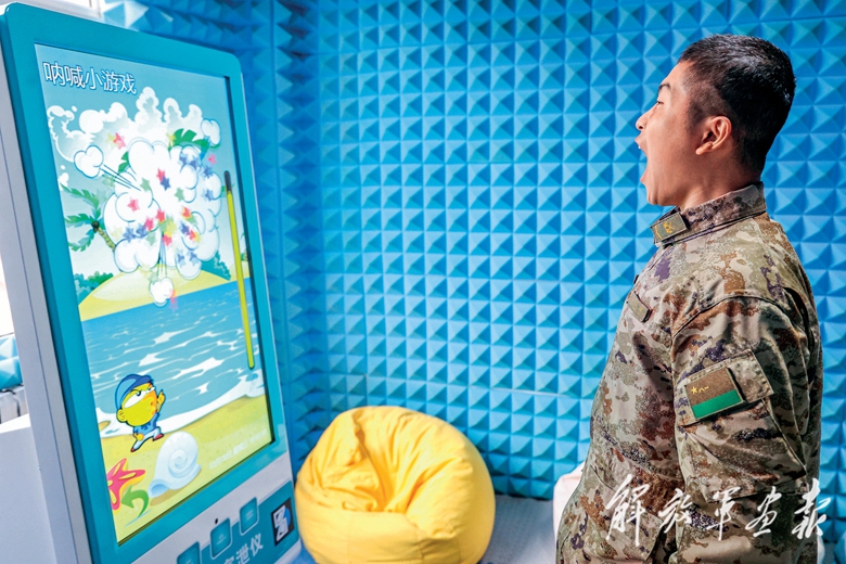 戰(zhàn)士通過吶喊小游戲緩解壓力。