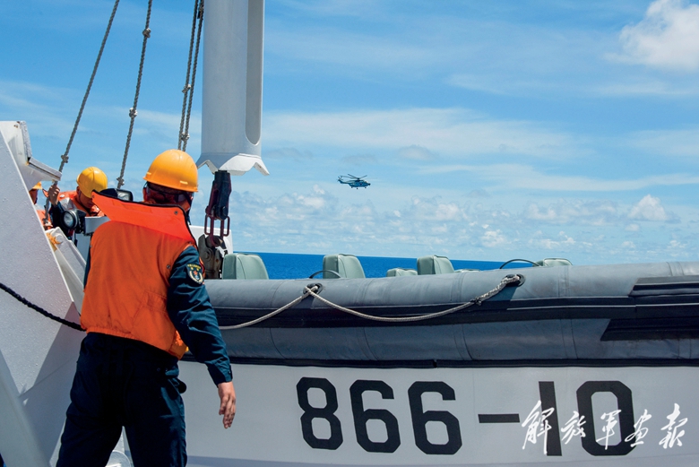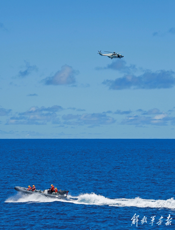 艦載直升機(jī)和高速救護(hù)艇同時(shí)前出。