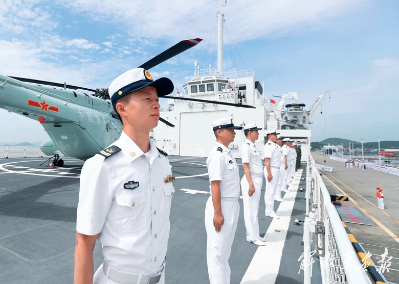 7月3日,和平方舟醫(yī)院船從某軍港起航,駛離碼頭。