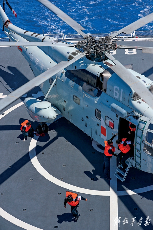 當(dāng)?shù)貢r(shí)間7月6日,在和平方舟醫(yī)院船開展的實(shí)戰(zhàn)化演練中,醫(yī)護(hù)人員搭乘艦載直升機(jī)準(zhǔn)備離艦。