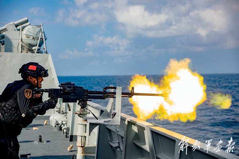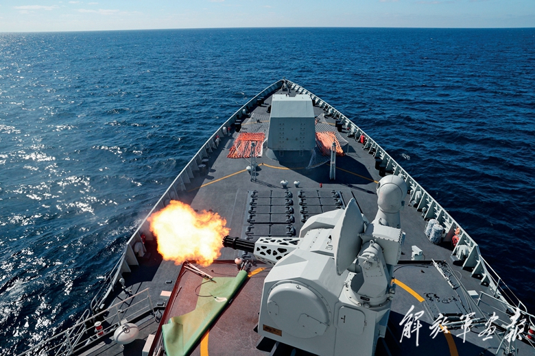 2023年2月6日,淮南艦進(jìn)行海上射擊訓(xùn)練。