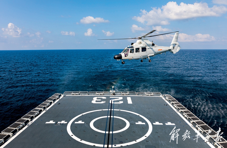 2023年2月3日,淮南艦進(jìn)行艦載直升機(jī)起降訓(xùn)練。