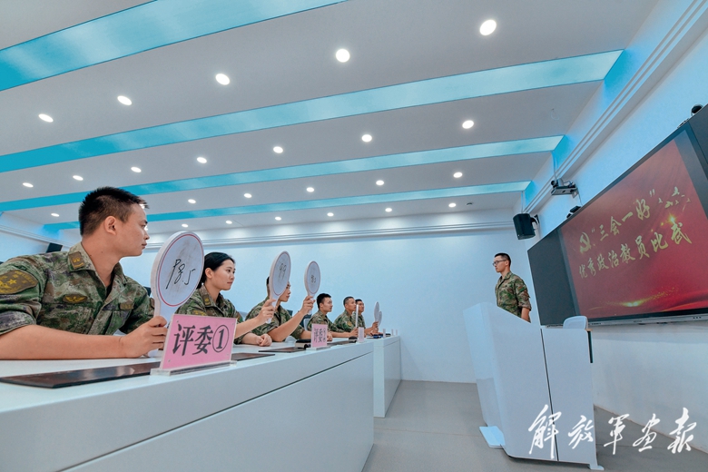 充分發(fā)揮基層官兵主體作用,讓戰(zhàn)士當(dāng)評委為干部授課打分。