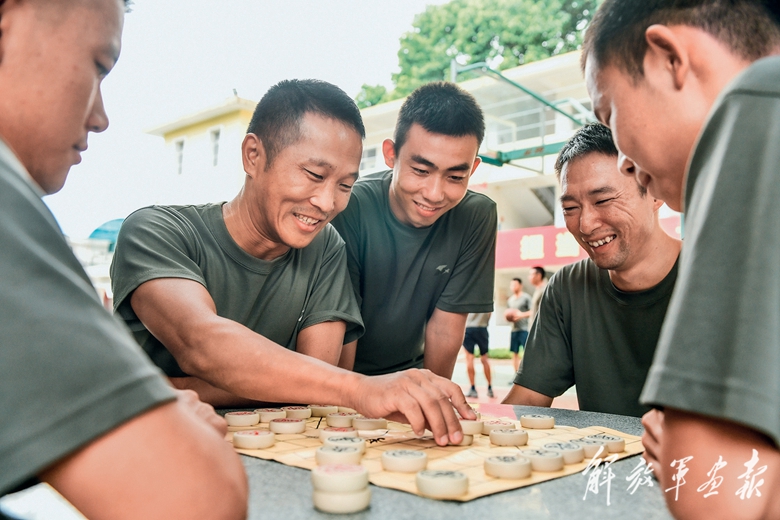 業(yè)余時(shí)間,官兵在一起下棋娛樂。