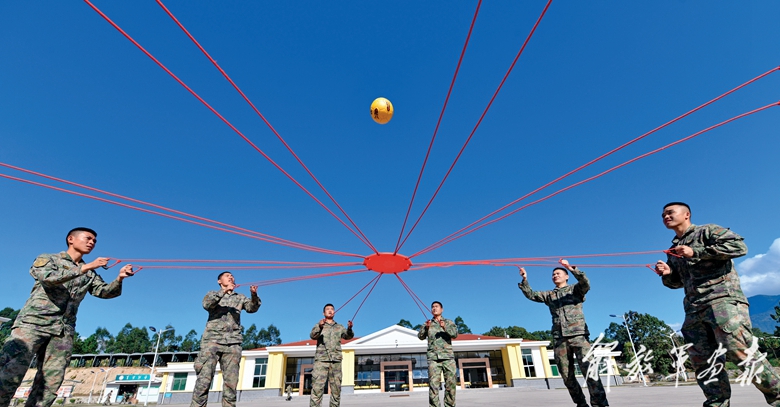 官兵在周末開展“擊鼓傳球”游戲,增強(qiáng)團(tuán)隊(duì)協(xié)作精神。
