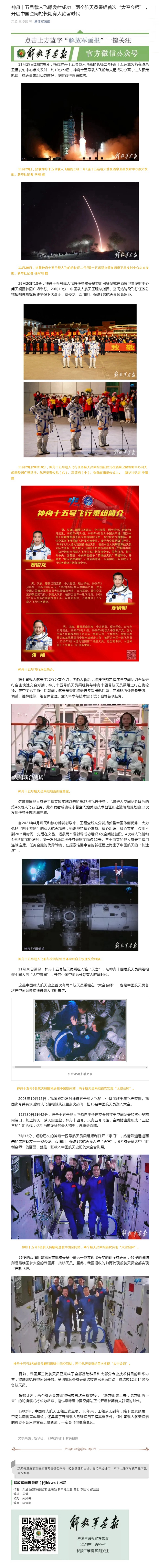 《神舟十五號載人飛船發(fā)射成功,兩個航天員乘組首次“太空會師”,開啟中國空間站長期有人駐留時代》(“解放軍畫報”官方微信公眾號2022年12月1日推送)