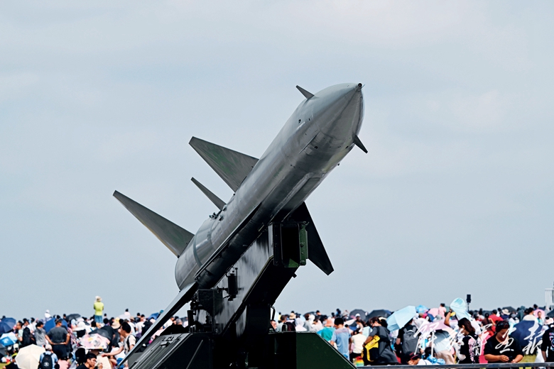紅-2乙地空導(dǎo)彈在地面靜態(tài)展示區(qū)進行展示。