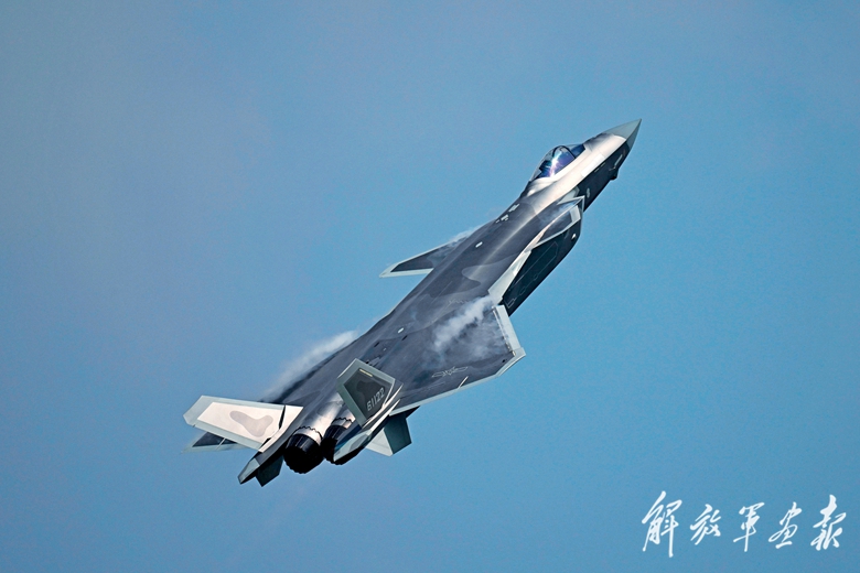 4架殲-20戰(zhàn)機組成鉆石隊形,自云端呼嘯而來,讓“空中拼刺刀”的戰(zhàn)斗精神跨越時空,劃出人民空軍新時代的奮飛航跡。