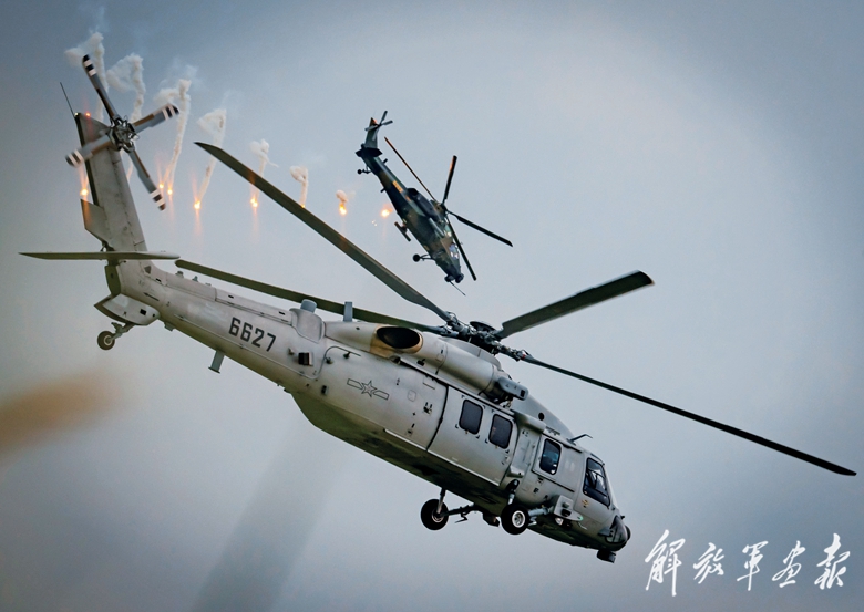 直-20與直-10進行空中突擊展示。(攝影/楊 軍)