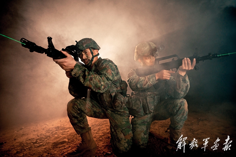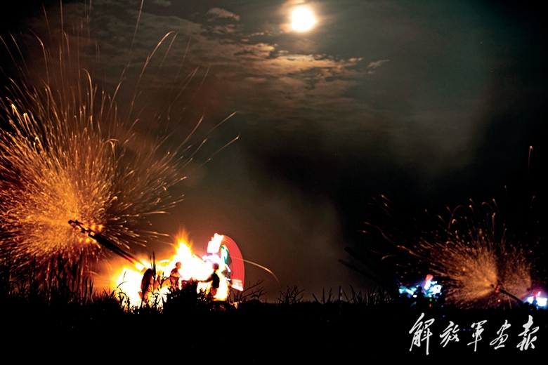 火力分隊(duì)實(shí)施夜間對空抗擊。