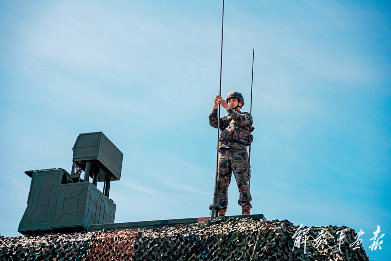 火力分隊(duì)完成雷達(dá)對瞄、反干擾設(shè)備開機(jī)后,一張電磁“天網(wǎng)”隨之鋪開,成功破除“敵”襲擾企圖。