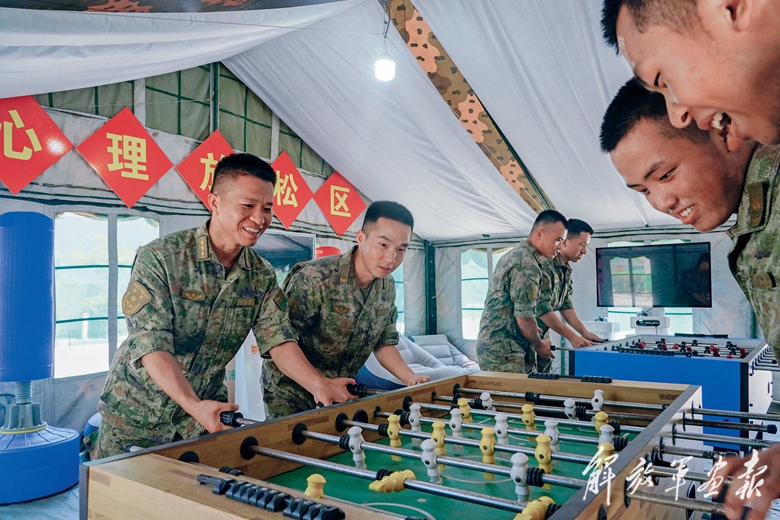課余時(shí)間,官兵同娛樂(lè),其樂(lè)融融。