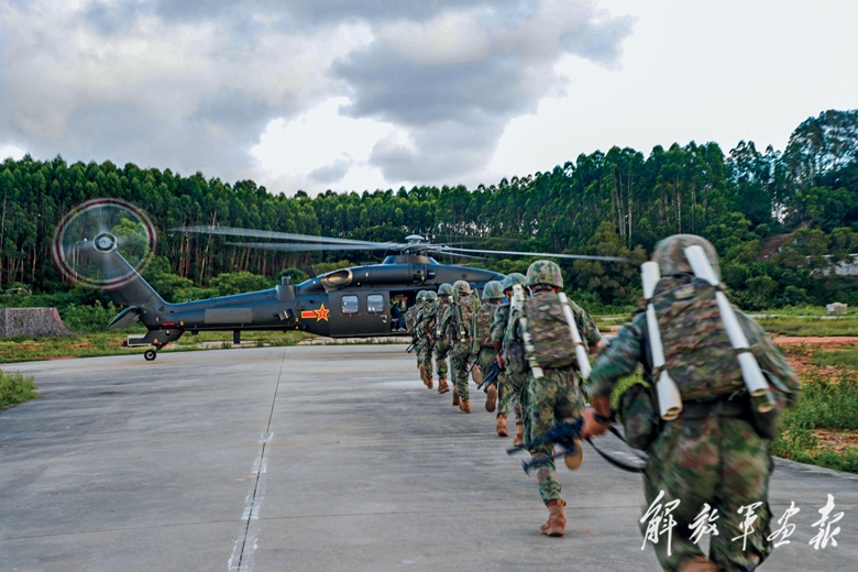 “尊干愛(ài)兵標(biāo)兵連”開(kāi)展機(jī)降協(xié)同訓(xùn)練。
