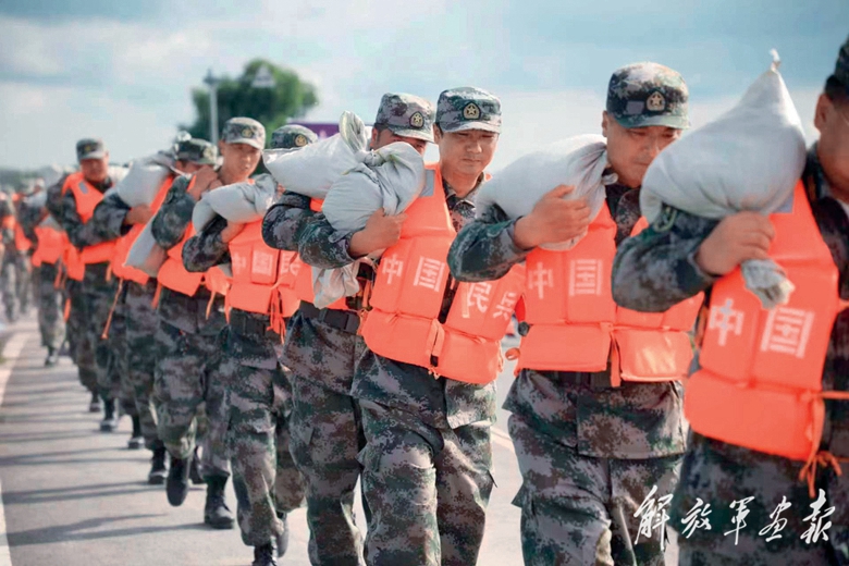 為全力保障人民群眾生命財(cái)產(chǎn)安全,人民子弟兵聞令而動,迅疾馳援。他們在風(fēng)雨中毅然逆行,挽臂成壩,以赤膽忠心筑起巍巍長堤。