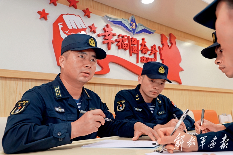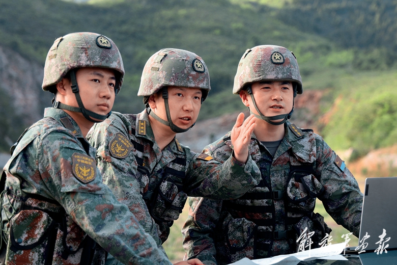 李陽(中)同戰(zhàn)友進行作戰(zhàn)研究。