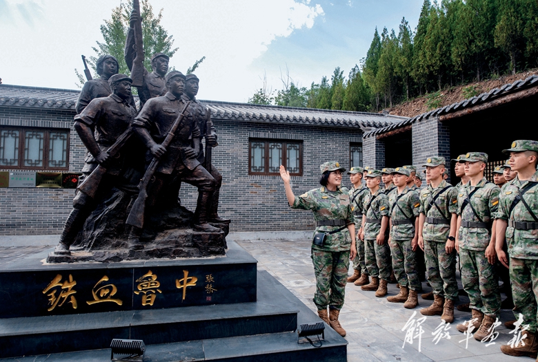 顧愛云在駐地紅色場館進行現(xiàn)地教學,激勵學員賡續(xù)紅色基因,投身強軍實踐。