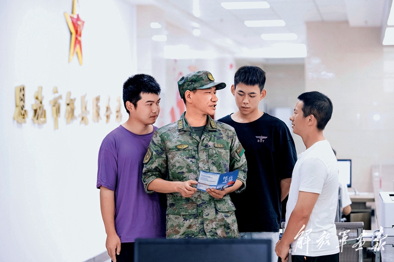 趙麗(中)一心向戰(zhàn),積極探索思想政治教育方法手段創(chuàng)新。