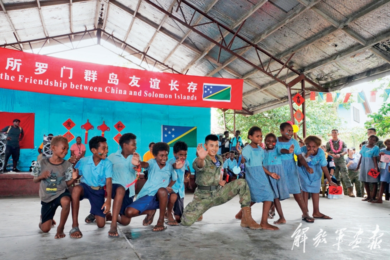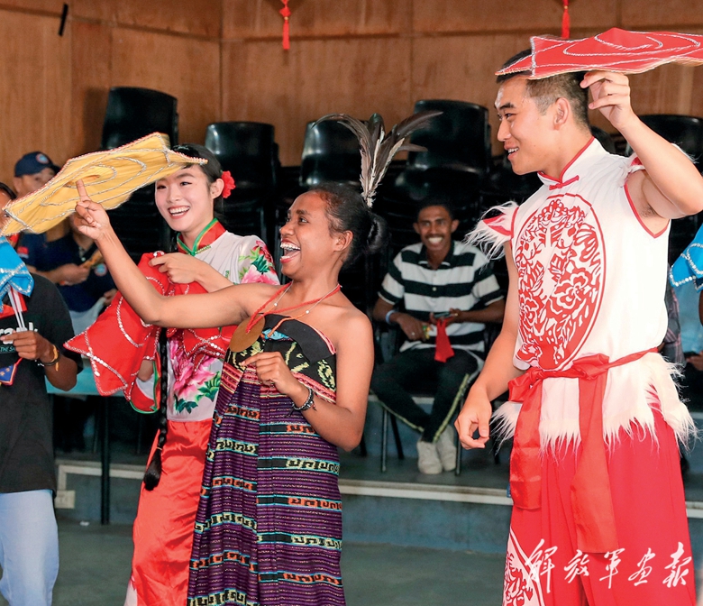 最是歌聲動(dòng)人心。在南太大學(xué)基里巴斯分校,熱情的大學(xué)生們拉著從中國(guó)遠(yuǎn)道而來的客人來到操場(chǎng),大家載歌載舞;湯加中學(xué)文化聯(lián)誼表演中,當(dāng)?shù)貙W(xué)生與官兵合唱中文歌曲《甜蜜蜜》,將現(xiàn)場(chǎng)氣氛推向高潮;首屆東帝汶中國(guó)文化節(jié)上,我海軍官兵用當(dāng)?shù)卣Z言演唱當(dāng)?shù)孛窀琛痘丶摇罚艿綗崃覛g迎……歌聲與友誼,跨越了不同國(guó)家、不同語言、不同文化,讓人們的心聯(lián)結(jié)在一起。