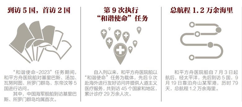9月19日,海軍和平方舟醫(yī)院船靠泊浙江舟山某軍港,圓滿完成“和諧使命-2023”任務(wù)。