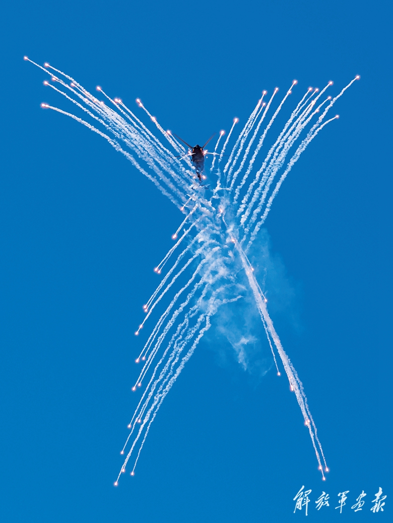 直-20戰(zhàn)機(jī)釋放干擾彈。
