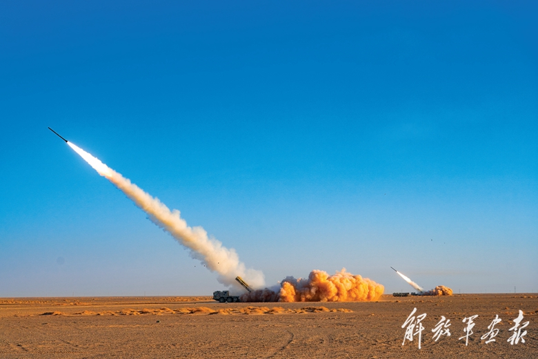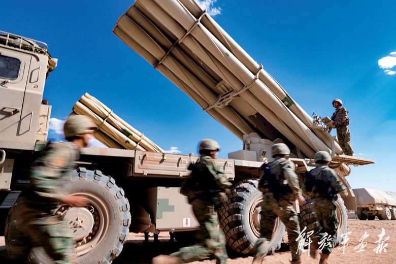 戰(zhàn)炮列陣,硝煙彌漫。一枚枚火箭彈呼嘯出膛,對目標(biāo)進(jìn)行“點(diǎn)穴”式打擊……近日,陸軍某炮兵旅在大漠深處進(jìn)行實(shí)彈射擊演練,錘煉遠(yuǎn)程奪控、精打快撤、多點(diǎn)打擊等作戰(zhàn)能力。