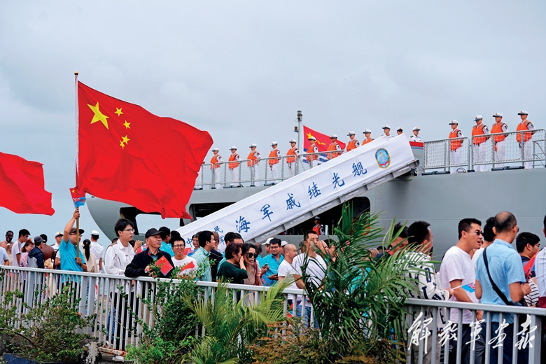 9月17日,戚繼光艦訪問(wèn)印度尼西亞,當(dāng)?shù)厝A人華僑登艦參觀。
