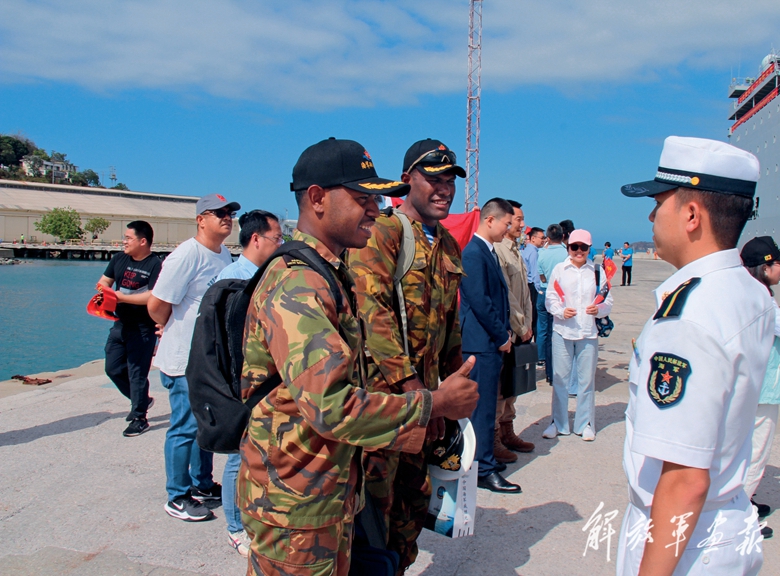 10月5日,實(shí)習(xí)學(xué)員隨戚繼光艦訪問(wèn)斐濟(jì),當(dāng)?shù)厝A人華僑和中資企業(yè)員工代表排隊(duì)登艦參觀。