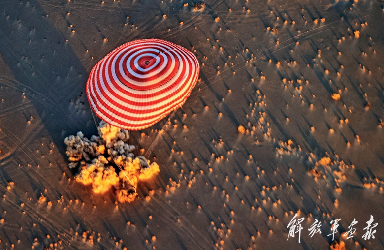 神舟十六號(hào)載人飛船返回艙返回瞬間。(攝影/新華社記者 連  振)