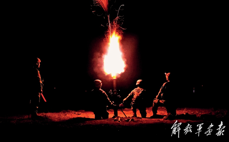 “東北方向發(fā)現(xiàn)目標!”午夜時分,新的“敵情”傳來,各火力單元密切協(xié)同,做好抗擊準備。隨著一聲令下,多型火器對目標實施集火射擊,成功摧毀目標。