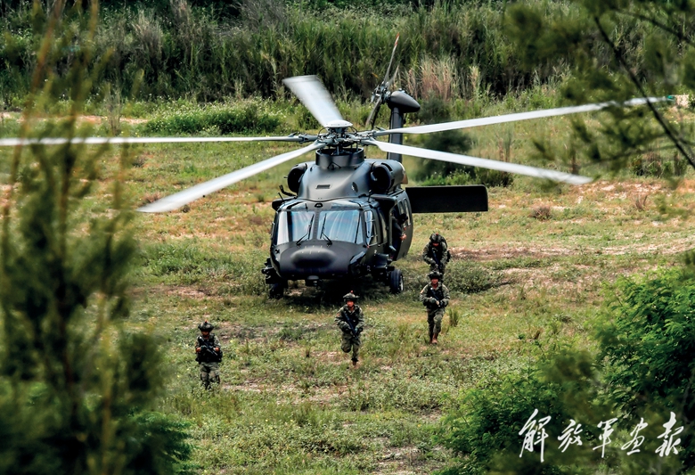 直升機著陸后,官兵發(fā)起沖擊。