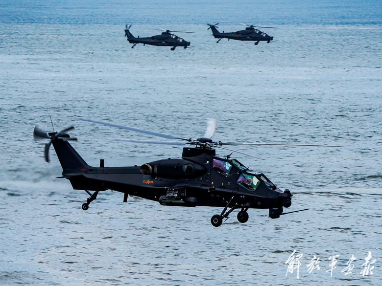 “起飛!”隨著指揮員一聲令下,某陸航旅數(shù)架直升機升空,完成戰(zhàn)術編組后迅速向預定海域飛去。
