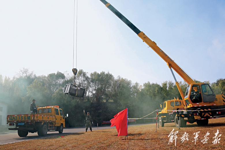民兵分隊進(jìn)行裝卸載課目比武。