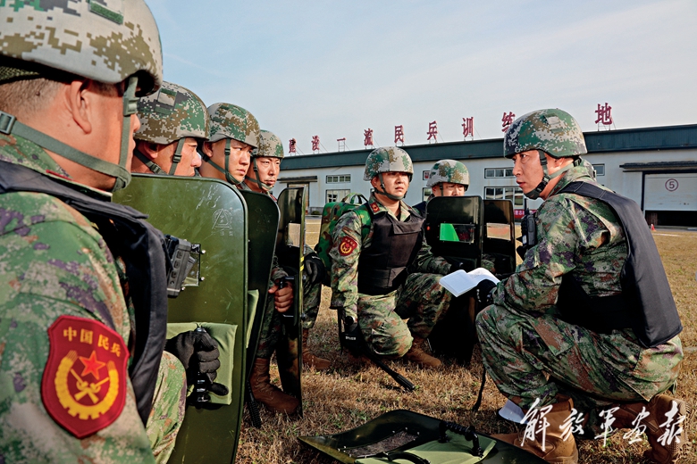 民兵分隊進(jìn)行衛(wèi)勤保障課目比武。