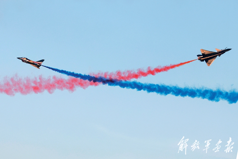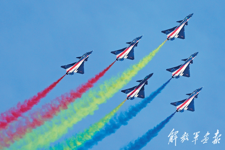 空軍八一飛行表演隊的飛行表演為觀眾帶來一場視覺盛宴。
